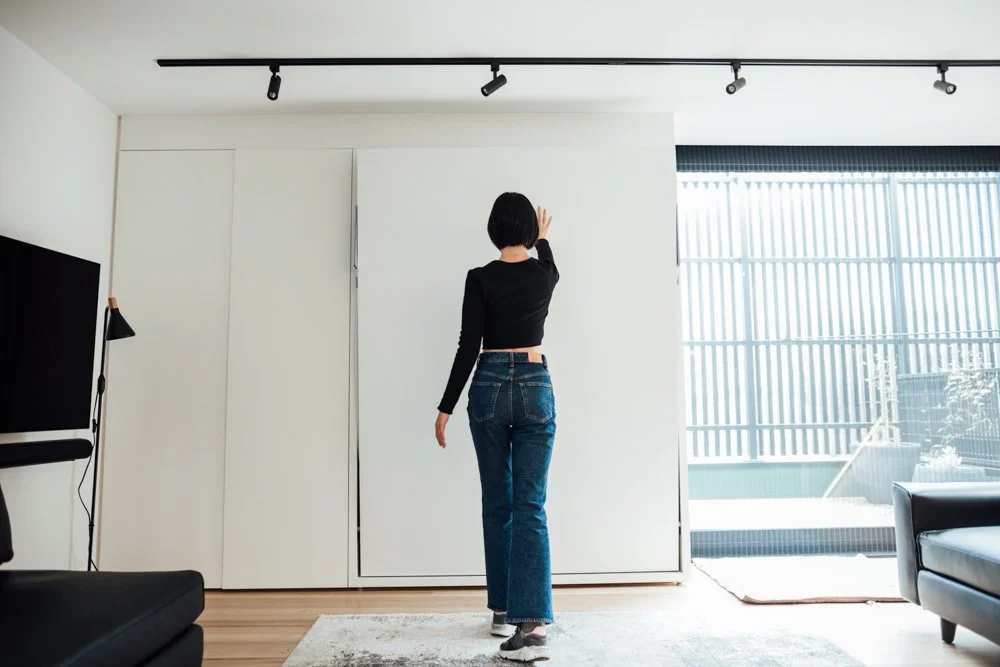 The addition of a studio garage hidden away in Shands lane reflects the existing façade treatments of the neighbouring houses. The double garage workshop with a white room leads to the upper floor that houses a studio with a double façade separated by a balcony on the western side of the proposal. Further, the western wall extends to deal with the issue of overlooking neighbours’ spaces. The acute angle created in between the western wall and the studio wall accommodates a swing gate with a restricted view of their personal backyard not only further resolves the issue of overlooking but also visually connects the studio to the rest of the house.